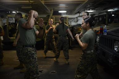 | Keywords: Composite Training Unit Exercise (COMPTUEX) 131210-N-BD629-153.jpg en U S Marines practice combat techniques as part of the Marine Corps Martial Arts Program aboard the amphibious transport dock ship USS Mesa Verde LPD 19 in the Atlantic Ocean Dec 10 2013 The Mesa Verde with the embarked 22nd Marine Expeditionary Unit was participating in a composite training unit exercise in preparation for deployment U S Navy photo by Mass Communication Specialist 3rd Class Shannon M Smith/Released 2013-12-10 Petty Officer 3rd Class Shannon Smith https //www dvidshub net/image/1140815 131210-N-BD629-153 2013-12-19 04 41 USS MESA VERDE LPD 19 AT SEA PD-USGov-Military-Navy 22nd Marine Expeditionary Unit USS Mesa Verde LPD-19 Images from DoD uploaded by Fæ |