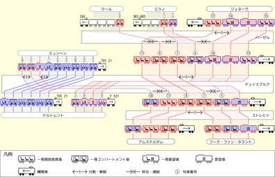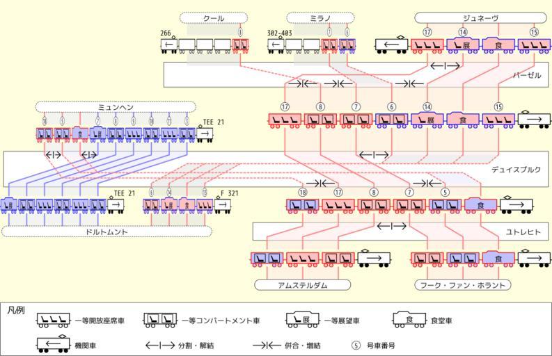 Keywords: Composition of TEE 9 Rheingold in 1965 ja.svg ja 1965å¹´å¤ãƒ イヤã«ãŠã‘る北行TEEラインゴルト TEE 9 ã ラインプファイル TEE 21 ã®ç·¨æˆãŠã‚ˆã³è»Šä¸¡å…¥ã‚Œæ›ãˆã®å›³ã ‚ 機関車ã®äº¤æ›ã¯å›³ç¤ºã—ã¦ã„ãªã„ã ‚ã¾ãŸæ©Ÿé–¢è»Šã®ã‚·ãƒ«ã‚¨ãƒƒãƒˆï¼ˆè»¸æ•°ç‰ï¼‰ã¯æ£ç¢ºã¨ã¯é™ã‚‰ãªã„ã ‚ TEE21 ラインプファイルã¯ãƒŸãƒ¥ãƒ³ãƒ˜ãƒ³ - ãƒ•ãƒ©ãƒ³ã‚¯ãƒ•ãƒ«ãƒˆé–“é †ç·¨æˆã ‚3å·è»Šã¯ãƒ•ランクフルト - ドルトムント間ã®ã¿é £çµã ‚ Mertens Maurice; Malaspina Jean-Pierre(2007) La légende des Trans-Europ-Express LR Press ISBN 978-2-903651-45-9 p 255ã®æƒ…å ±ã«åŸºã¥ãä½ æˆã ‚ en Composition of TEE 9 Rheingold and related trains in the summer schedule of 1965 own Matsukaze 2011-02-19 TEE Rheingold |