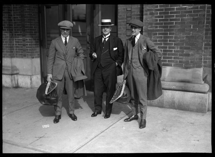 Keywords: blackandwhite monochrome photo border black and white Mr. Con Jones with Lalonde and Dandurand VPL Accession Number: 35177 Date: 1912 Photographer/Studio: Thomson, Stuart Content: 'Famous promoter, Con Jones, who built Callister Park, imported Newsy Lalonde (for reported $3,500) left, and Leo Dandurand from east in 1912, the year Vancouver won world lacrosse championship. Lalonde was voted outstanding lacrosse star of last 50 years. Dandurand was later president of both Montreal Canadiens Hockey Club and Alouettes Football club' from Vancouver Sun Jan. 11, 1956 Topic: Lacrosse Sports Men's clothing Hats Person: Jones, Con, d. 1942 Lalonde, Edouard Cyrille (Newsy), 1887-1970 Dandurand, Joseph Viateur (Leo), 1889-1964 Location: British Columbia - Vancouver More information on our historical photograph collection: www.vpl.ca/historicalphotos Mr. Con Jones with Lalonde and Dandurand VPL Accession Number: 35177 Date: 1912 Photographer/Studio: Thomson, Stuart Content: 'Famous promoter, Con Jones, who built Callister Park, imported Newsy Lalonde (for reported $3,500) left, and Leo Dandurand from east in 1912, the year Vancouver won world lacrosse championship. Lalonde was voted outstanding lacrosse star of last 50 years. Dandurand was later president of both Montreal Canadiens Hockey Club and Alouettes Football club' from Vancouver Sun Jan. 11, 1956 Topic: Lacrosse Sports Men's clothing Hats Person: Jones, Con, d. 1942 Lalonde, Edouard Cyrille (Newsy), 1887-1970 Dandurand, Joseph Viateur (Leo), 1889-1964 Location: British Columbia - Vancouver More information on our historical photograph collection: www.vpl.ca/historicalphotos |