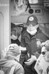 Keywords: 911 ambulance black and white blackandwhite emergency paramedic rescue people monochrome black and white Rescuer of the emergency medical service concentrated to receive the patient Rescuer of the emergency medical service concentrated to receive the patient |