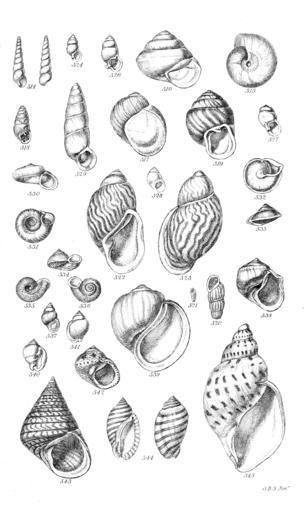 | Keywords: Conchological Manual Plate 25.png  Plate Fig 514 to 545 Names see below are as used in the 1842 text gutenberg A Conchological Manual 43417 1842 George Brettingham Sowerby II 1812 “1884 PD-art-100 <table> <tr><td style font-size 80 > FIG </td> <tr><td style line-height 150 ; text-align center; colspan 2 > <i>Fam </i> Colimacea </td></tr> <tr><td> 514 </td> <td> Achatina octona Macrospira Guild </td></tr> <tr><td> 515 </td> <td> Stenopus cruentatus Guild Under side </td></tr> <tr><td> 516 </td> <td> lividus </td></tr> <tr><td> 517 </td> <td> Helix the aperture covered by the epiphragm </td></tr> <tr><td> 518 </td> <td> Pupa secale Drap Abida Leach </td></tr> <tr><td> 519 </td> <td> pagoda Gonidomus Sw </td></tr> <tr><td> 520 </td> <td> Truncatella enlarged figure </td></tr> <tr><td> 521 </td> <td> The same natural size </td></tr> <tr><td> 522 </td> <td> Auricula caprella <i>Gen </i> Caprella Nonnul Front view </td></tr> <tr><td> 523 </td> <td> The same dorsal view </td></tr> <tr><td> 524 </td> <td> Pupina vitrea </td></tr> <tr><td> 526 </td> <td> antiquata </td></tr> <tr><td> 527 </td> <td> Namezii </td></tr> <tr><td> 528 </td> <td> lubrica Callia Gray </td></tr> <tr><td> 529 </td> <td> Cyclostoma a pupiform species Megalomastoma Guild </td></tr> <tr><td> 530 </td> <td> Planorbulum Cyclotus Guild </td></tr> <tr><td> 531 </td> <td> a similar species with the complicated notch at the posterior part of the aperture Pterocyclos Gray </td></tr> <tr><td> 532 </td> <td> Helicina acutissima nobis View of the under side Trochatella Sw </td></tr> <tr><td> 533 </td> <td> The same in profile </td></tr> <tr><td> 534 </td><td rowspan 3 ><table> <tr><td rowspan 3 >17px </td><td rowspan 3 >Strophostoma Desh three views </td></tr> </table></td></tr> <tr><td> 535 </td></tr> <tr><td> 536 </td></tr> <tr><td style line-height 150 ; text-align center; colspan 2 > <i>Fam </i> Peristomata </td></tr> <tr><td> 537 </td> <td> Paludina impura Bithinia Gray </td></tr> <tr><td> 538 </td> <td> Ampullaria avellana Thallicera Sw Ampullarina </td></tr> <tr><td> 539 </td> <td> A species of Ampullaria having a thickened ledge on which the shelly operculum rests Pachystoma Guild changed to Pachylabra Sw </td></tr> <tr><td style line-height 150 ; text-align center; colspan 2 > <i>Fam </i> Plicacea </td></tr> <tr><td> 540 </td> <td> Ringicula Desh A fossil species front view </td></tr> <tr><td> 541 </td> <td> Back view of the same </td></tr> <tr><td style line-height 150 ; text-align center; colspan 2 > <i>Fam </i> Turbinacea </td></tr> <tr><td> 542 </td> <td> Turbo nicobaricus Chrysostoma Sw </td></tr> <tr><td> 543 </td> <td> Trochus Iris Elenchus Humph </td></tr> <tr><td style line-height 150 ; text-align center; colspan 2 > <i>Fam </i> Purpurifera </td></tr> <tr><td> 544 </td> <td> Purpura vexilla <i>Gen </i> Vexilla Sw </td></tr> <tr><td> 545 </td> <td> Priamus Achatina priamus Auct The propriety of placing it in this family will depend upon the correctness of the statement made by Dr Beck that this shell is marine and possesses an operculum </td></tr> </table> A conchological manual 1842 |
