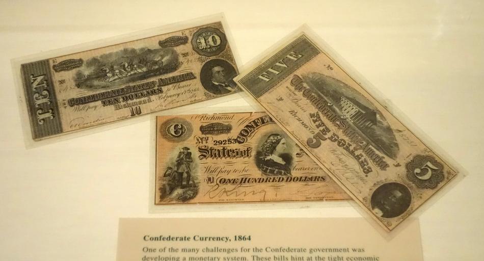 Keywords: Confederate currency, 1864, redeemable two years after peace treaty between CSA and USA - The Lyceum - Alexandria, Virginia - DSC03458.JPG en Exhibit in the Lyceum Alexandria Virginia USA This work is old enough so that it is in the public domain 2013-10-02 14 18 47 own Daderot cc-zero Exhibits in the Lyceum Alexandria Virginia Uploaded with UploadWizard Banknotes of the Confederate States of America Banknotes with a face value of 5 Banknotes with a face value of 10 Banknotes with a face value of 100 |