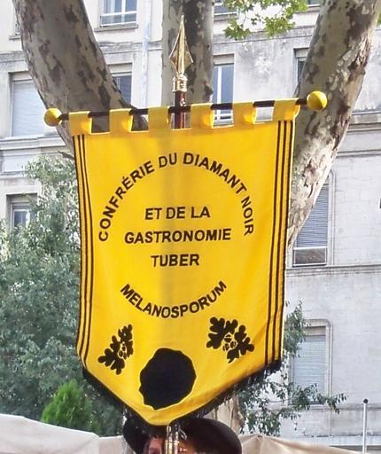 | Keywords: Confrérie du Diamant Noir.JPG en Banner of the Brotherhood of Black Diamond and Gastronomy of tuber Melanosporum fr Bannière de la Confrérie du Diamant Noir et de la Gastronomie Tuber Melanosporum own Véronique PAGNIER 2010-09-04 Confrérie du diamant noir Tuber melanosporum Taken with Kodak EasyShare Z950 |