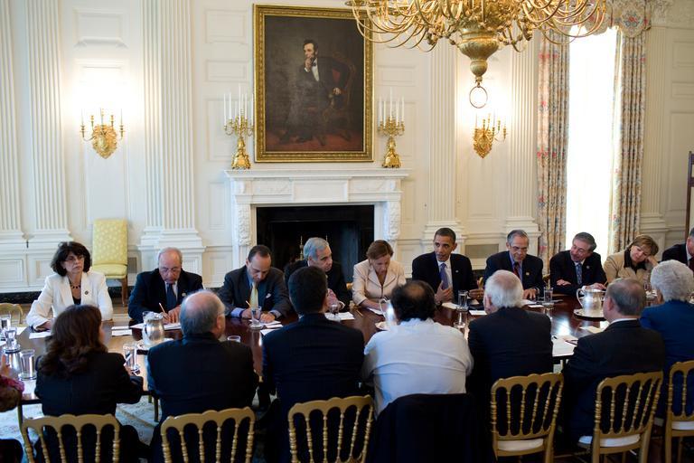Keywords: Congressional Hispanic Caucus in the State Dining Room 2010.jpg en President Barack Obama meets with members of the Congressional Hispanic Caucus in the State Dining Room on the State Floor of the White House in Washington D C in the United States on June 29 2010 2010-06-29 16 05 37 https //www flickr com/photos/whitehouse/4746720577/ The White House Pete Souza photographer other versions PD-USGov Uploaded with UploadWizard State Dining Room |