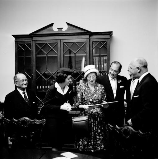 | Keywords: u.s. national archives usnationalarchives jfk presidential library jfkpresidentiallibrary blackandwhite people monochrome black and white Original Caption: Congressman Victor L. Anfuso (New York) with Visitors in the Fish Room of the White House We are looking for your help in identifying unknown people in our White House Photographs collection. If you have any information about this photograph, please post a comment, including any relevant sources, for the catalogers at the John F. Kennedy Presidential Library. Thank you! Local Identifier: JFKWHP-ST-125-1-61 Created By: President (1961-1963 : Kennedy). Office of the Naval Aide to the President. (1961 - 1963) From: President (1963-1969 : Johnson). White House Photograph Office. (1963 - 1969) Contact: John F. Kennedy Library (LP-JFK), Columbia Point Boston, MA 02125-3398 Phone: 617-514-1600 Fax: 617-514-1652 Email: kennedy.library@nara.gov Production Dates: 5/24/1961 Scope and Content Note: TThis is a photograph of Congressman Victor L. Anfuso of New York (fourth from left) with five unidentified visitors, Fish Room (Conference Room), White House, Washington, D.C. Persistent URL: JFK Library URL: www.jfklibrary.org/Asset-Viewer/Archives/JFKWHP-ST-125-1-... Access Restrictions: Unrestricted Use Restrictions: Unrestricted Original Caption: Congressman Victor L. Anfuso (New York) with Visitors in the Fish Room of the White House We are looking for your help in identifying unknown people in our White House Photographs collection. If you have any information about this photograph, please post a comment, including any relevant sources, for the catalogers at the John F. Kennedy Presidential Library. Thank you! Local Identifier: JFKWHP-ST-125-1-61 Created By: President (1961-1963 : Kennedy). Office of the Naval Aide to the President. (1961 - 1963) From: President (1963-1969 : Johnson). White House Photograph Office. (1963 - 1969) Contact: John F. Kennedy Library (LP-JFK), Columbia Point Boston, MA 02125-3398 Phone: 617-514-1600 Fax: 617-514-1652 Email: kennedy.library@nara.gov Production Dates: 5/24/1961 Scope and Content Note: TThis is a photograph of Congressman Victor L. Anfuso of New York (fourth from left) with five unidentified visitors, Fish Room (Conference Room), White House, Washington, D.C. Persistent URL: JFK Library URL: www.jfklibrary.org/Asset-Viewer/Archives/JFKWHP-ST-125-1-... Access Restrictions: Unrestricted Use Restrictions: Unrestricted |