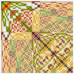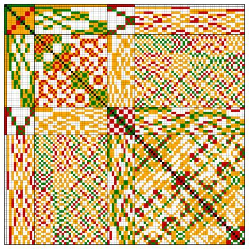 Keywords: Conjugacy classes of products of 4-involutions.svg The products of http //pastebin com/jfeDCMGA the 105 4-involutions of 8 elements belong to five different conjugacy classes here represented by colors <br> 4-involutions are permutations with 4 2-cycles Inkscape-hand Bin2svg own Mate2code Mate2code; files for deletion |