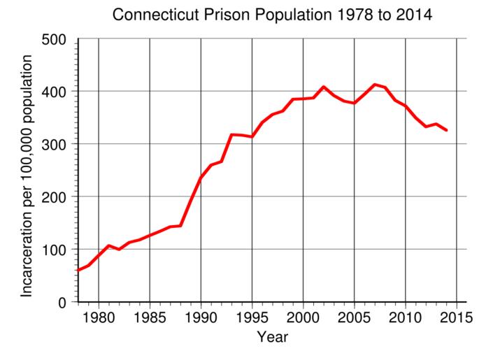 Keywords: Connecticut Prison Population.svg en Connecticut prison incarceration rate per 100 000 population from 1978 to 2014 Data from http //www bjs gov/index cfm ty nps BJS 2016-05-11 own Delphi234 other versions current annually Generated with Wikimedia SVG Chart SVG Chart/box cc-zero Demographics of Connecticut Imprisonment and detention rates in the United States |