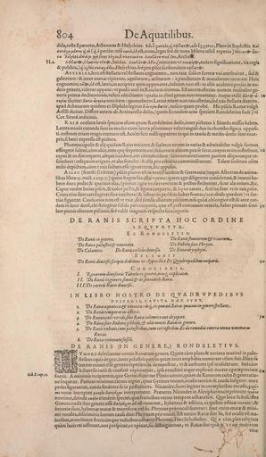Keywords: Conradi Gesneri medici Tigurini Historiae animalium liber IV (15570069162).jpg 8o 4 <br> DeAquatilibus <br> LiM cp fr <br> dida tefteEpameto Athenams Hciychius Kavliya\Cof yM° ‚¬ T K viyxiKvf Vhtoin ophiMs K«Jt <br> eiha- n pirTot fyvhC pothis nifi x«m id eft noua legas fed de noua Mileto nihil reperio Mj'a»t a i- <br> – 'B tlsi Qi ctK\ayt yg» fivnf h byov ti TrkttTUuaTV A oCclth ftoi e~ 3w Arche <br> H a AioCd T® Q -ofutxof ToV©- Suidas AewCaTi jo os- nimirumvtAsfti of jeademfignilicationejviaregia <br> publica i 3i - o-jA WffM Herychius redpropifce fcribendum hibGa T <br> AsTERiASjhoceftftellarisvelftellatuscognomen nonraia folumformaivniattnbuitur fed <br> galeorum interauesaccipitrum aquilarUm ardearum apun orum macularumvarietate Huic <br> cognominiAo id eft laeuis in accipitre quin opponatur dubium non eft in aliis aculeato potiusin eo- <br> demgenere videturopponi vtpauloanteinRaialasuidiximus Eftautemafterias nomen mafculinige- <br> neris primae declinationis veluti adiectiuum qualia in aliud genus non mouentur itaque recte – Ht a- 19 <br> rsf ias dicitur Zatk ars iat non item quamobrem Latinc etiam non raia afterias fed raia ftellaris dixerim <br> apud Athenaeum quidem exDiphilo legitur « Ve / j3 t/ - nefcio quam probe Hic pifcis Romic vulgo <br> Arfilli dicitur Difrertautem ab Arzinarello di o quemfecundam acus fpeciem Rondeletius facit vc <br> Cor Sitard indicauit <br> Rai e oculataelasuisipeciemaliamquamRondeletiusdeditjinterpiduras a Sitardo milTas habeo <br> Latera minus rotunda funt in medio enim latera prominent velutianguli duo in rhombo figura oppoii- <br> ti roftrum etiam magis exertum eft Aculei fere nulli apparent iis qui in cauda medio dorio funt exce- ¢ <br> ptis fi bene cxprefla eft pidura <br> Pharmacopolas alij quidam Raias exiccare fceletos earum in varias admirabiles vulgo formas <br> ‚¬rEngerefolent cumalias tumqu ferpentemautdraconemalatumpra;feferat corpuseniminfIecl;unr a <br> caput os distorquent aliqua ihcidunt aut circumcidunt laterum anteriorem partem aliquousque re- <br> fcindunt reliquum erigunt vt alas iimulet alia pro arbitriocomminilcuntur Talem fcelcton olim <br> mihi depidum cum e raiafaclum eife ignorarem hic appofui <br> A s l e c ii reot-e fcribitur pifcis planns eft in mari Fiandria; Germaniaj inquit Albertus de anima- <br> libus libro 15 tract i cap y quem linguafua afkc vocant quem ego diligenter confideraui inue ni ha- <br> bere duos pedes quatuor alas pinnas quas verius ventrem pecius flecTruntur iicut a\x auium c <br> Caputautemhuiuspifcisj colorpeliisj iiguracorporis iaporcarnis fereitaiunt vtin raiapiice <br> Crura eius funt cartilagincs iine iunctura iiibtus in pedibus habet foueas Cacetabula qua dam vt for- <br> tius figantur Cauda eius non eft vt raiaj fed iimilis aliorum piicium nifiqu6d oblongior eft ante cau- <br> daminloco dorii vbiftringiturfolida parscorporis qusceftpoftconcauumventris habetpinnam fimi- 3® <br> lerapinnisaliorumpifcium fedvalde magnamreipecT ufuicorporis <br> D E RANIS S CRIPTA HOC ORDINE <br> S E Q V V N <br> E X R O N D E <br> Dc Ranis in genere <br> DeRana palujiri venenata <br> De Calamite De Rana ccelitus demijfa <br> B E L L O N <br> De Ranis diuerfisfcriptn dedtmm in Appendice De Quadrupcdibw ouiparit <br> C O R O L L A R I A <br> / 'RanarumdiuifionkTabulatngenerceiusc expUcatio <br> II De Ranis ingenerefimul de fiuuiatili Rana <br> III DeceterisRanisdiuerJis <br> IN tJBRO NOSTRO DE QJ A DR VP E D I B VS <br> OVIPARIS CAPITA H£C SVNT <br> De Rana aauatica innoxia decj tis qu ad Ranas cjuasuu ingenereJpeclanL <br> 'De Ranistemporanis zfiwis <br> 'De Ranunculo viridifme Rana calamiteaut drjopete <br> De Ranafiue Rubetagibbofa altismutis Ranismgenere <br> De Ranis rubetis tumpalufiribus tum terrefiribus Et de remedtis contra omnei venenatat <br> Ranas <br> DeRana venenatafojfdi <br> RANIS IN GENERE RONDELETIVS <br> Vmore dele antur omnia Ranarum genera Quare cum plura notiora maxime in palu- <br> ftribus aquis degant inter paluftda potius quam inter amphibia numerare vifum fuit Diueria <br> autemearumelfegcneraexperientia demonftrat vt authoresipfi tradiderunt Sedcum <br> _ adiuerfisvarie confuse exponantur ipiaenucliateatqueexplicatedocereoperaprecium <br> fuerit A minimis incipiemus qusf Gyrini dicuntur Plinio autore quum de Ranarum coitu generatio- <br> neloquitur Pariuntminimascarnesnigras quas Gyrinosvocant oculistantum caudainfignes mox <br> pedes flgurantur cauda findente fe in pofteriores Nicander ficuti legitur in exemplaribus excufis sf u- <br> m vocat interpres ya vf o t§ d f interpretatur Prasterea Nicanderin Alexipharmacisprimum uZov <br> nominat deinde mqh eiusdem fpeciei quaefruticibus verno tempore adhaerefcit Quo loco Scholuftes <br> Grsecus tradit duo genera elfe fat »y id eftranarum hybernas aeftiuas exquibus seftiuas coaxanr <br> innoxia; funt hyberna mutae mortiferae vel fic Phrynus pro vocali fumitur funt enim mutx mini- <br> me vocales difcriminis horum cauia dixit Phrynum pro vocali Eft autem Ranas fim lis fed oculis eft ma- <br> ioribus arundinum fruticumque radicibus adhseret Phrynus Haec Scholiaftes Qv x cum plus calirinis <br> juam lucis rei adferant nos peripicue vt opinor fic diftinguemus vt Ranae fint quMf 1 r uf maiorem <br> vita <br> T V R <br> l e x 1 o <br> De Ranisfiuuiorum c riuorttm <br> De Rubetafiue Phryno <br> 'De Ranadryophytc <br> 1 1 <br> 40 <br> 1 <br> 2 <br> 3- <br> 4- <br> J <br> 6 <br> E <br> 5 42166435 132845 65980 Page 804 Text IV http //www biodiversitylibrary org/page/42166435 1604 10 5962/bhl title 65980 Belon Pierre; Cambier Andreas; Gessner Conrad; Rondelet Guillaume NameFound Calamite NameConfirmed Calamite NameBankID 4098474 NameFound Phryno NameConfirmed Phryno EOLID 83428 NameBankID 4295304 NameFound Phrynus NameConfirmed Phrynus EOLID 109626 NameBankID 4295386 NameFound Ranis NameConfirmed Ranis NameBankID 4580422 Biodiversity Heritage Library Conradi Gesneri medici Tigurini Historiae animalium liber IV qui est De