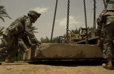Keywords: Constructing a Battle Position DVIDS46383.jpg en Soldiers from Company F 4th Battalion 31st Infantry Regiment 2nd Brigade Combat Team 10th Mountain Division Light Infantry from Fort Drum N Y began moving a concrete foundation into place to construct an observation tower at a new battle position near Quarghuilli Village Iraq The battle position is being constructed to interdict the flow of al-Qaida personnel and weapons into Baghdad 1999-11-30 Staff Sgt Tierney Wilson https //www dvidshub net/image/46383 46383 2007-06-07 13 48 QUARGHULLI IQ PD-USGov Fort Drum Images from DoD uploaded by Fæ |