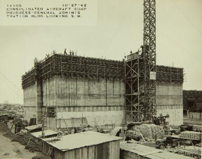 | Keywords: sdasm san diego air and space museum sandiegoairandspacemuseum aviation aeropace factories aeropacefactories san diego sandiego convair consolidated outdoor monochrome Call No.: 10-000065 Notes: Construction of Administration Building Title: Consolidated/Convair Aircraft Factory San Diego Year: 1942 Corp. Name: Convair/Consolidated Description: 8 x 10 Black and White Glossy Print Repository: San Diego Air and Space Museum Archive Call No.: 10-000065 Notes: Construction of Administration Building Title: Consolidated/Convair Aircraft Factory San Diego Year: 1942 Corp. Name: Convair/Consolidated Description: 8 x 10 Black and White Glossy Print Repository: San Diego Air and Space Museum Archive |