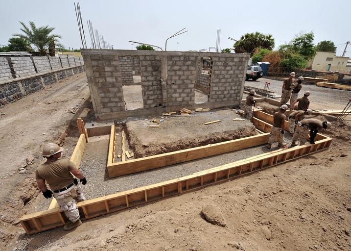 Keywords: Construction in Djibouti DVIDS311773.jpg en Seabees assigned to Naval Mobile Construction Battalion 7 Combined Joint Task Force-Horn of Africa Detachment prepare concrete forms at Ecole 5 a five-room school under construction near Camp Lemonnier 2010-08-18 Petty Officer 2nd Class Nathan Laird https //www dvidshub net/image/311773 100818-N-+++++-026 2010-08-23 20 54 CAMP LEMONNIER DJ PD-USGov-Military-Navy Combined Joint Task Force - Horn of Africa Camp Lemonnier Images from DoD uploaded by Fæ Photographs by Nathan Laird |