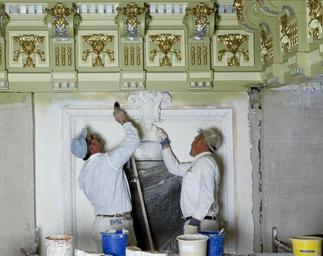 Keywords: construction restoration work renovation builder industry workers architecture willard hotel washington dc usa historic contractor painting plaster wall restore old structure