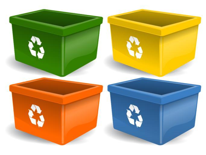Keywords: container recycle recycling box plastic green yellow red orange blue