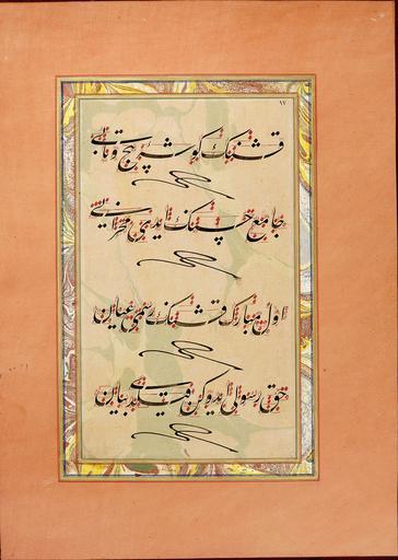 | Keywords: Containing calligraphies ascribed to Nazif Bey - Murakka (calligraphic album) - Google Art Project.jpg 1846 Containing 603037 calligraphies ascribed to Nazif Bey 1846 /collection/sakp-sabanc-museum/artwork/murakka-calligraphic-album-containing-calligraphies-ascribed-to-nazif-bey/573980/ Containing calligraphies ascribed to Nazif Bey /artist/nazif-bey/12540357/ 12540357 /collection/sakp-sabanc-museum/ Sakıp Sabancı Museum 479109 http //muze sabanciuniv edu/ 12/28/2011 6 21 36 PM /collection/sakp-sabanc-museum/artwork/murakka-calligraphic-album-containing-calligraphies-ascribed-to-nazif-bey/573980/ 1846 1800s 316 573980 False 1846 3/24/2012 4 55 02 AM 120-0226-HN Sakıp Sabancı Museum Ink colours and gold on paper 1840 1850 w232 x h316 mm 1800s False 0 7109375 Sakıp Sabancı Museum Object murakka-calligraphic-album-containing-calligraphies-ascribed-to-nazif-bey Murakka calligraphic album m 232 special url_id 2wGPdLXzXmC6iw PD-old-70 Google Art Project works by Nazif Bey attributed Islamic calligraphy |