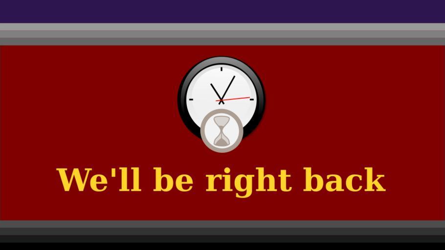 Keywords: Content intermission.svg en An intermission screen for use in video productions and live streams 2014-03-05 00 30 29 own Stalewarning svg CMBJ Uploaded with UploadWizard Video production graphics