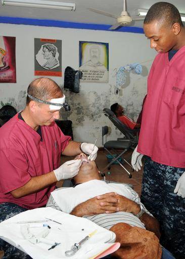 Keywords: Continuing Promise 2010 action DVIDS310009.jpg en Cmdr Scott Thomas a dental officer and Seaman Rashad Thompson hospitalman both assigned to the multi-purpose amphibious assault ship USS Iwo Jima perform dental work on a Colombian man at the Continuing Promise medical site Escuela Ismael Contreas Iwo Jima is operating off the coast of Colombia supporting the Continuing Promise 2010 humanitarian civic assistance mission The assigned medical and engineering staff embarked aboard Iwo Jima are working with partner nation teams to provide medical dental veterinary and engineering assistance to several different nations 2010-08-14 U S Navy photo by Petty Officer 3rd Class Travis J Kuykendall https //www dvidshub net/image/310009 100814-N-+++++-013 2010-08-16 15 24 COVENAS CO PD-USGov-Military-Navy Continuing Promise 2010 Images from US Navy location Iwo Jima Japan Images from DoD uploaded by Fæ |