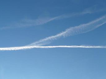 Keywords: contrail sky clouds blue aircraft fly air travel