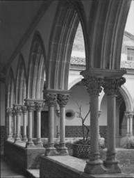 | Keywords: arquitectura gótico portugal convento de cristo conventodecristo tomar fundação calouste gulbenkian fundaçãocaloustegulbenkian mário tavares chicó máriotavareschicó mário novais márionovais gótica biblioteca de arte bibliotecadearte Claustro do Cemitério. Fotógrafo: Mário Novais, 1899-1967. Orientador científico: Mário Tavares Chicó, 1905-1966 Data aproximada da produção da fotografia original: 1954. [CFT015.365.ic] Convento de Cristo O Convento da Ordem de Cristo e o Castelo Templário, em Tomar, formam um conjunto monumental único no seu género. O Castelo foi fundado em 1160 por Dom Gualdim Pais, Mestre provincial da Ordem do Templo em Portugal, e dentro das suas muralhas viveram as primeiras gentes de Tomar. O coração da fortaleza, a Alcáçova, com a torre de menagem, foi construída a Oriente; o lugar místico, a Igreja octogonal Templária, foi construída a Ocidente. Com o extermínio da Ordem pelas perseguições de Filipe, o Belo, Rei de França, os Templários encontraram, em Portugal, a continuidade da sua sagrada missão de Cavalaria. A Ordem do Templo foi extinta em 1312, mas os seus bens e, em parte, a sua vocação, foram transmitidos, em Portugal, à Ordem de Cristo, criada em 1319. Sob os auspícios de D. Dinis é, então, fundada a "Ordem dos Cavaleiros de Cristo", a qual foi durante quatro anos negociada pelo monarca com a Santa Sé, e veio a integrar pessoas e bens da extinta Ordem do Templo. É com a Ordem de Cristo que a nação portuguesa se abre para a empresa das descobertas marítimas do séc. XV. Tomar é, então, sede da Ordem, e o Infante D. Henrique o seu Mestre. Com a expansão da fé cristã e do reino, também a sede da Ordem de Cristo se dilata. Os séculos e a história de Portugal vão deixando, na arquitectura do Convento, testemunhos do tempo e dos homens que lideraram os destinos de Portugal. Durante o governo do infante D. Henrique foram construídos dois claustros góticos no Convento. Com D. Manuel, a igreja templária é prolongada para Ocidente por uma construção que serviria o Capítulo da Ordem. Profusamente impregnada pela simbólica dos Cavaleiros de Cristo, esta construção aloja na sua fachada ocidental a famosa Janela da Sala do Capítulo, de Diogo de Arruda (cerca de 1510). Mais tarde, D. João III pretende fazer profundas mudanças na Ordem, alterando as suas Regras e transformando os Cavaleiros em monges contemplativos; é a partir deste reinado que se iniciam importantes trabalhos de ampliação do Convento, com vista a consumar a Reforma da Ordem. Esses trabalhos vão continuar através de vários reinados, até ao século XVIII, deixando marcas de diversas tendências artísticas. O Convento de Cristo encerra no seu conjunto arquitectónico testemunhos da arte do Românico, templária, do Gótico e do Manuelino, ao tempo das Descobertas, do Renascimento joanino, do Maneirismo, nas suas várias facetas e, por fim, do Barroco, presente em vária ornamentação arquitectónica. Da estrutura arquitectural do Convento, além das edificações construídas em torno da igreja templária, há a salientar o conjunto de quatro grandes claustros articulados por dois eixos em cruz latina, e também um aqueduto com 6 Km de extensão mandado edificar por Filipe II. Integra os domínios conventuais uma área de floresta e cultivo conhecida por Mata dos Sete Montes, por estar confinada por sete colinas de acentuado relevo. (Fonte: IPPAR - tinyurl.com/4dnm5m) Claustro do Cemitério. Fotógrafo: Mário Novais, 1899-1967. Orientador científico: Mário Tavares Chicó, 1905-1966 Data aproximada da produção da fotografia original: 1954. [CFT015.365.ic] Convento de Cristo O Convento da Ordem de Cristo e o Castelo Templário, em Tomar, formam um conjunto monumental único no seu género. O Castelo foi fundado em 1160 por Dom Gualdim Pais, Mestre provincial da Ordem do Templo em Portugal, e dentro das suas muralhas viveram as primeiras gentes de Tomar. O coração da fortaleza, a Alcáçova, com a torre de menagem, foi construída a Oriente; o lugar místico, a Igreja octogonal Templária, foi construída a Ocidente. Com o extermínio da Ordem pelas perseguições de Filipe, o Belo, Rei de França, os Templários encontraram, em Portugal, a continuidade da sua sagrada missão de Cavalaria. A Ordem do Templo foi extinta em 1312, mas os seus bens e, em parte, a sua vocação, foram transmitidos, em Portugal, à Ordem de Cristo, criada em 1319. Sob os auspícios de D. Dinis é, então, fundada a "Ordem dos Cavaleiros de Cristo", a qual foi durante quatro anos negociada pelo monarca com a Santa Sé, e veio a integrar pessoas e bens da extinta Ordem do Templo. É com a Ordem de Cristo que a nação portuguesa se abre para a empresa das descobertas marítimas do séc. XV. Tomar é, então, sede da Ordem, e o Infante D. Henrique o seu Mestre. Com a expansão da fé cristã e do reino, também a sede da Ordem de Cristo se dilata. Os séculos e a história de Portugal vão deixando, na arquitectura do Convento, testemunhos do tempo e dos homens que lideraram os destinos de Portugal. Durante o governo do infante D. Henrique foram construídos dois claustros góticos no Convento. Com D. Manuel, a igreja templária é prolongada para Ocidente por uma construção que serviria o Capítulo da Ordem. Profusamente impregnada pela simbólica dos Cavaleiros de Cristo, esta construção aloja na sua fachada ocidental a famosa Janela da Sala do Capítulo, de Diogo de Arruda (cerca de 1510). Mais tarde, D. João III pretende fazer profundas mudanças na Ordem, alterando as suas Regras e transformando os Cavaleiros em monges contemplativos; é a partir deste reinado que se iniciam importantes trabalhos de ampliação do Convento, com vista a consumar a Reforma da Ordem. Esses trabalhos vão continuar através de vários reinados, até ao século XVIII, deixando marcas de diversas tendências artísticas. O Convento de Cristo encerra no 