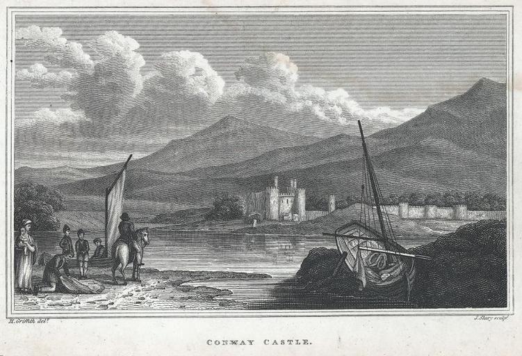 | Keywords: Conway Castle (1131907).jpg accession number Griffith H fl ca 1820 Shury James fl ca 1812 engraver credit line Abstract View across the Conwy Estury showing a woman and child fishermen boats and a man on horseback in the foreground and Conwy Castle in the background Size mm 140 158 exhibition history Institution National Library of Wales Technique print engraving bw object history object type CC-zero place of creation place of discovery 1131907 Conway Castle 1131907 Uploaded with GWToolset Conway Castle 1131907 http //dams llgc org uk/iiif/test/2 0/image/1131907/full/1000 /0/default jpg Welsh Landscape Collection Images uploaded as part of NLW - WMUK collaboration River Conwy Conwy Castle in art |