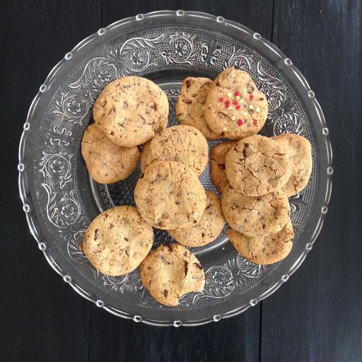Keywords: cookies kitchen flat gourmand home made biscuits plate glass shock chip cookies