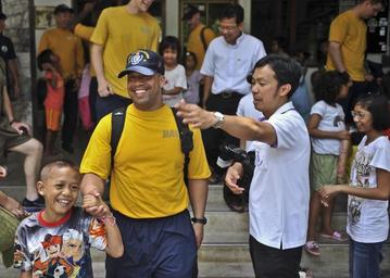 Keywords: Cooperation Afloat Readiness and Training Thailand 2012 120519-N-HI414-429.jpg en A Thai boy pretends to go to the amphibious dock landing ship USS Germantown LSD 42 with U S Navy Hull Maintenance Technician 3rd Class Adrine Thomas after a community service project at a local social center Germantown is in Thailand supporting exercise Cooperation Afloat Readiness and Training CARAT 2012 CARAT is a series of bilateral military exercises between the U S Navy and armed forces of Bangladesh Brunei Cambodia Indonesia Malaysia the Philippines Singapore and Thailand Timor Leste joins CARAT for the first time in 2012 U S Navy photo by Mass Communication Specialist Seaman Gregory A Harden II <br>Unit Cooperation Afloat Readiness and Training 2012-05-19 Petty Officer 3rd Class Gregory Harden https //www dvidshub net/image/583915/cooperation-afloat-readiness-and-training-thailand-2012 120519-N-HI414-429 2012-05-20 01 01 SATTIHIP TH PD-USGov-Military-Navy Cooperation Afloat Readiness and Training 2012 USS Germantown LSD-42 Images from DoD uploaded by Fæ |