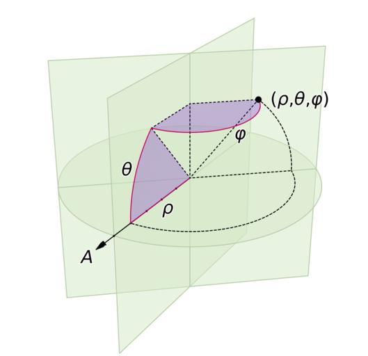 Keywords: Coord system SE 1.svg make-coord-system-figure with parameters -back 0 -rho 1 -system SE Own Jorge Stolfi 2009-05-03 Spherical coordinates