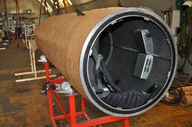 | Keywords: Copenhagen Suborbitals MSC 6.jpg en The micro spacecraft MSC will be launched by a HEAT rocket to an altitude above 100 km Prior to re-entry it will jettison the booster and decelerate by a succession of parachutes This version named Tycho Brahe 1 is 640 mm in diameter and should support a crash test dummy in a August 2010 flight to 40 km The temperatures are expected to be below 200°C rendering a heat shield superfluous However a cork heat shield is added in order to test its adhesion at supersonic flights da MSC Micro Spacecraft skal opsendes i en parabelbane med et toppunkt over 100 km MSC skal kobles fra HEAT-raketten og på tilbageturen skal MSC nedbremses af en række faldskærme Udgaven på billedet Tycho Brahe 1 er 640 mm i diameter og skal bemandes med en crashtest dummy der i august 2010 skal opsendes til 40 km Temperaturerne vil ikke overstige 200° C så den behøver ikke noget varmeskjold Kork-varmeskjoldet er alligevel påsat for at afprøve dets fastholdelsesevne ved overlydshastighed own Necessary Evil 2010-05-16 Picture taken at an open house arrangement May 16th 2010 at the Copenhagen Suborbitals' lair Copenhagen Suborbitals Manned spacecraft Prototypes |