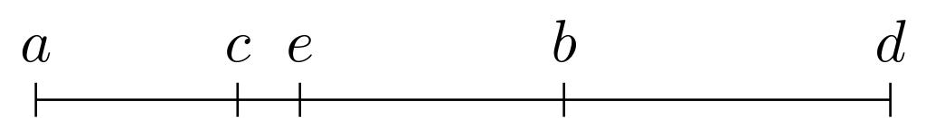 Keywords: Coppernicus 005.svg de à ber die Kreisbewegungen der Weltkörper 5 File Kreisbewegungen-Coppernicus-0 djvu p 33 1879 w Nicolaus Copernicus File Coppernicus5 png PD-old-100 De revolutionibus drawings LaTeX Source Code <syntaxhighlight lang latex > complile with »pdflatex« \documentclasstikz convert pdf2svg standalone \begin document \begin tikzpicture \pgfmathsetmacro \MyLength 5 ; \pgfmathsetmacro \MyPhi 1+sqrt 5 /2 ; \pgfmathsetmacro \MyB \MyLength/\MyPhi ; \draw 0 0 -- \MyLength 0 ; \draw 0 -0 1 -- + 0 0 2 nodeabove a ; \draw \MyB -0 1 -- + 0 0 2 nodeabove b ; \draw \MyB-\MyB/\MyPhi -0 1 -- + 0 0 2 nodeabove c ; \draw \MyLength -0 1 -- + 0 0 2 nodeabove d ; \draw \MyB/2 -0 1 -- + 0 0 2 nodeabove e ; \end tikzpicture \end document </syntaxhighlight> |