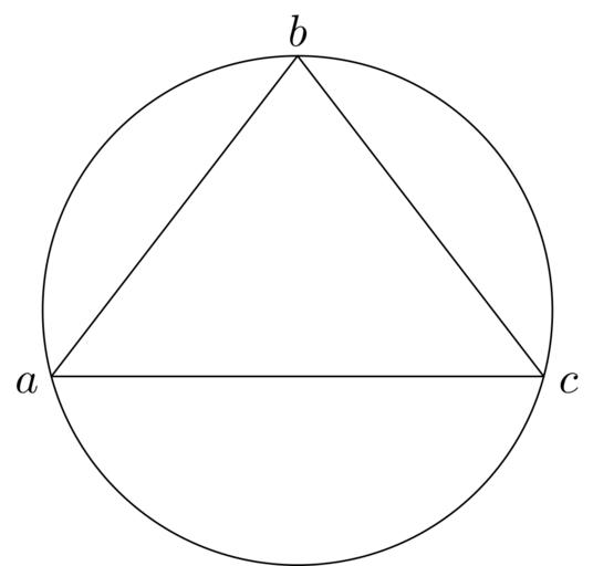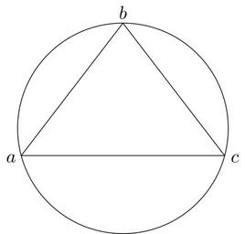 Keywords: Coppernicus 012.svg de à ber die Kreisbewegungen der Weltkörper 12 File Kreisbewegungen-Coppernicus-0 djvu p 43 1879 w Nicolaus Copernicus File Coppernicus_012 png PD-old-100 De revolutionibus drawings LaTeX Source Code <syntaxhighlight lang latex > complile with »pdflatex« \documentclasstikz convert pdf2svg standalone \begin document \begin tikzpicture \draw 0 0 circleradius 2; \coordinate A at -165 2 ; \coordinate B at 90 2 ; \coordinate C at -15 2 ; \draw A -- B ; \draw A -- C ; \draw B -- C ; \draw A + -165 0 2 node a ; \draw B + 90 0 2 node b ; \draw C + -15 0 2 node c ; \end tikzpicture \end document </syntaxhighlight> |