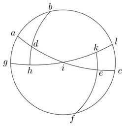 Keywords: Coppernicus 021.svg de à ber die Kreisbewegungen der Weltkörper 21 File Kreisbewegungen-Coppernicus-0 djvu p 49 1879 w Nicolaus Copernicus File Coppernicus_021 png PD-old-100 De revolutionibus drawings LaTeX Source Code <syntaxhighlight lang latex > complile with »pdflatex« \documentclasstikz convert pdf2svg standalone \usepackage tkz-euclide \usetkzobj all \begin document \begin tikzpicture \tkzSetUpLineline width 0 4pt \tkzDefPoint 0 0 I \tkzDefPoint 104 2 B \tkzDefPoint 150 2 A \tkzDefPoint 181 2 G \tkzDefPoint -76 2 F \tkzDefPoint -9 2 C \tkzDefPoint 20 2 L \begin pgfinterruptboundingbox \tkzCircumCenter A I C \tkzGetPoint O1 \tkzCircumCenter G I L \tkzGetPoint O2 \end pgfinterruptboundingbox \tkzDefPointByrotation center O1 angle -14 I \tkzGetPoint D \tkzDefPointByrotation center O1 angle 14 I \tkzGetPoint E \tkzDefPointByrotation center O2 angle -12 I \tkzGetPoint H \tkzDefPointByrotation center O2 angle 12 5 I \tkzGetPoint K \begin pgfinterruptboundingbox \tkzCircumCenter B D H \tkzGetPoint O3 \tkzCircumCenter F E K \tkzGetPoint O4 \end pgfinterruptboundingbox \tkzDrawCircle I A \tkzDrawArccolor black O1 A C \tkzDrawArccolor black O2 G L \tkzDrawArccolor black O3 B H \tkzDrawArccolor black O4 F K \draw A + 150 0 2 node a ; \draw B + 90 0 2 node b ; \draw C + -9 0 2 node c ; \draw D + 40 0 2 node d ; \draw E + -45 0 2 node e ; \draw F + -120 0 25 node f ; \draw G + 181 0 2 node g ; \draw H + -90 0 2 node h ; \draw I + -90 0 2 node i ; \draw K + 90 0 2 node k ; \draw L + 40 0 2 node l ; \end tikzpicture \end document </syntaxhighlight> |
