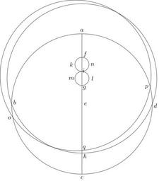 | Keywords: Coppernicus 041.svg de à ber die Kreisbewegungen der Weltkörper 41 File Kreisbewegungen-Coppernicus-0 djvu p 136 1879 w Nicolaus Copernicus File Coppernicus_041 png PD-old-100 De revolutionibus drawings LaTeX Source Code <syntaxhighlight lang latex > complile with »pdflatex« \documentclasstikz convert pdf2svg standalone \usepackage tkz-euclide \usetkzobj all \begin document \begin tikzpicture \tkzSetUpLineline width 0 4pt \tkzDefPoint 90 4 A \tkzDefPoint 180 4 B \tkzDefPoint -90 4 C \tkzDefPoint 0 4 D \tkzDefPoint 0 0 E \tkzDefPoint -90 2 8 H \tkzDefPoint -169 4 O \tkzDefPoint 14 4 P \tkzDefPoint -90 2 65 Q \tkzDrawCircle E A \begin pgfinterruptboundingbox \tkzCircumCenter O P Q \tkzGetPoint X1 \tkzCircumCenter B H D \tkzGetPoint X2 \tkzInterLC A C X2 X1 \tkzGetPoints I G \coordinate X3 at X2 2 I ; \tkzInterLC A C X3 I \tkzGetPoints F I \end pgfinterruptboundingbox \tkzDrawCircle X1 O \tkzDrawCircle X2 B \tkzDrawCircle X2 X1 \tkzDrawCircle X3 I \tkzDefPointByrotation center X2 angle -90 I \tkzGetPoint L \tkzDefPointByrotation center X2 angle 90 I \tkzGetPoint M \tkzDefPointByrotation center X3 angle -90 I \tkzGetPoint K \tkzDefPointByrotation center X3 angle 90 I \tkzGetPoint N \draw A -- C ; \draw A + 90 0 2 node a ; \draw B + 30 0 2 node b ; \draw C + -90 0 2 node c ; \draw D + -30 0 2 node d ; \draw E + 0 0 2 node e ; \draw F + 45 0 25 node f ; \draw G + -45 0 2 node g ; \draw H + -45 0 25 node h ; \draw I + 30 0 1 node i ; \draw K + 180 0 2 node k ; \draw L + 0 0 2 node l ; \draw M + 180 0 2 node m ; \draw N + 0 0 2 node n ; \draw O + -170 0 2 node o ; \draw P + 180 0 2 node p ; \draw Q + 50 0 2 node q ; \end tikzpicture \end document </syntaxhighlight> |