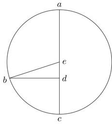 | Keywords: Coppernicus 059.svg de à ber die Kreisbewegungen der Weltkörper 59 File Kreisbewegungen-Coppernicus-0 djvu p 177 1879 w Nicolaus Copernicus File Coppernicus_059 png PD-old-100 De revolutionibus drawings LaTeX Source Code <syntaxhighlight lang latex > complile with »pdflatex« \documentclasstikz convert pdf2svg standalone \begin document \begin tikzpicture \pgfmathsetmacro \EA 2 1 ; \coordinate A at 90 \EA ; \coordinate B at -162 \EA ; \coordinate C at -90 \EA ; \coordinate D at A -B ; \coordinate E at 0 0 ; \draw E circleradius \EA; \draw B -- E ; \draw C -- A ; \draw B -- D ; \draw A + 90 0 2 node a ; \draw B + -162 0 2 node b ; \draw C + -90 0 2 node c ; \draw D + 0 0 2 node d ; \draw E + 0 0 2 node e ; \end tikzpicture \end document </syntaxhighlight> |