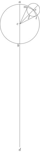 Keywords: Coppernicus 073.svg de à ber die Kreisbewegungen der Weltkörper 73 File Kreisbewegungen-Coppernicus-0 djvu p 216 1879 w Nicolaus Copernicus File Coppernicus_073 png PD-old-100 De revolutionibus drawings LaTeX Source Code <syntaxhighlight lang latex > complile with »pdflatex« \documentclasstikz convert pdf2svg standalone \usepackage tkz-euclide \usetkzobj all \begin document \begin tikzpicture \tkzSetUpLineline width 0 4pt \pgfmathsetmacro \CA 1 8 ; \tkzDefPoint 90 \CA A \tkzDefPoint -90 \CA B \tkzDefPoint 0 0 C \tkzDefPoint -90 6 25 \CA D \tkzDefPoint 46 \CA E \coordinate F at C 67 E ; \tkzTangentfrom C E F \tkzGetPoints L M \begin pgfinterruptboundingbox \tkzInterLC C E E F \tkzGetPoints F F2 \end pgfinterruptboundingbox \tkzDrawCircle C A \tkzDrawCircle E F \draw A -- D ; \draw C -- F2 ; \draw C -- M ; \draw C -- L ; \draw E -- M ; \draw E -- L ; \draw A + 90 0 2 node a ; \draw B + -135 0 2 node b ; \draw C + 180 0 2 node c ; \draw D + -90 0 2 node d ; \draw E + 0 0 2 node e ; \draw F + -90 0 25 node f ; \draw L + -90 0 2 node l ; \draw M + 180 0 2 node m ; \end tikzpicture \end document </syntaxhighlight> |