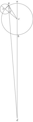Keywords: Coppernicus 074.svg de à ber die Kreisbewegungen der Weltkörper 74 File Kreisbewegungen-Coppernicus-0 djvu p 217 1879 w Nicolaus Copernicus File Coppernicus_074 png PD-old-100 De revolutionibus drawings LaTeX Source Code <syntaxhighlight lang latex > complile with »pdflatex« \documentclasstikz convert pdf2svg standalone \usepackage tkz-euclide \usetkzobj all \begin document \begin tikzpicture \tkzSetUpLineline width 0 4pt \pgfmathsetmacro \CA 1 83 ; \tkzDefPoint 90 \CA A \tkzDefPoint -90 \CA B \tkzDefPoint 0 0 C \tkzDefPoint -90 6 3 \CA D \tkzDefPoint 140 \CA E \coordinate F at C 68 E ; \begin pgfinterruptboundingbox \tkzInterLC C E E F \tkzGetPoints F F2 \tkzInterLC D F E F \tkzGetPoints G F \end pgfinterruptboundingbox \tkzInterCC C E E F \tkzGetPoints I2 I \tkzDrawCircle C A \tkzDrawCircle E F \draw A -- D ; \draw C -- F2 ; \draw D -- G ; \draw E -- G ; \draw C -- G ; \draw A + 90 0 2 node a ; \draw B + -45 0 2 node b ; \draw C + 0 0 2 node c ; \draw D + -90 0 2 node d ; \draw E + 180 0 2 node e ; \draw F + 20 0 2 node \footnotesize f ; \draw G + 80 0 2 node g ; \draw I + -84 0 25 node \footnotesize i ; \end tikzpicture \end document </syntaxhighlight> |