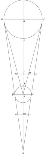 | Keywords: Coppernicus 079.svg de à ber die Kreisbewegungen der Weltkörper 79 File Kreisbewegungen-Coppernicus-0 djvu p 232 1879 w Nicolaus Copernicus File Coppernicus_079 png PD-old-100 De revolutionibus drawings LaTeX Source Code <syntaxhighlight lang latex > complile with »pdflatex« \documentclasstikz convert pdf2svg standalone \usepackage tkz-euclide \usetkzobj all \begin document \begin tikzpicture \tkzSetUpLineline width 0 4pt \pgfmathsetmacro \DB 2 ; \pgfmathsetmacro \DK 3 91 \DB ; \pgfmathsetmacro \KF 0 43 \DB ; \pgfmathsetmacro \KL 1 06 \DB ; \tkzDefPoint 180 \DB A \tkzDefPoint -90 \DB-\KF B' \tkzDefPoint 0 \DB C \tkzDefPoint 0 0 D \tkzDefPoint \KF -\DK E \tkzDefPoint -\KF -\DK G \tkzDefPoint 0 -\DK K \tkzDefPoint 0 -\DK+\KL L \tkzDefPoint 0 -\DK-\KL M \begin pgfinterruptboundingbox \tkzInterLC K D D A \tkzGetPoints B S2 \tkzInterLC K D K E \tkzGetPoints F2 F \tkzTangentfrom K D B' \tkzGetPoints T1 T2 \tkzInterLC D T1 D B \tkzGetPoints A C' \tkzInterLC D T2 D B \tkzGetPoints C A' \tkzDefLineparallel through C' T1 K \tkzGetPoint E' \tkzDefLineparallel through A' T2 K \tkzGetPoint G' \tkzInterLL A' G' C' E' \tkzGetPoint S \tkzTangentfrom K D B \tkzGetPoints C A \tkzInterLC D K D B \tkzGetPoints B2 B \tkzDefLineparallel through L E G \tkzGetPoint L2 \tkzDefLineparallel through M E G \tkzGetPoint M2 \tkzInterLL L L2 K A \tkzGetPoint N \tkzInterLL L L2 K C \tkzGetPoint O \tkzInterLL L L2 S C' \tkzGetPoint P \tkzInterLL M M2 S A' \tkzGetPoint Q \tkzInterLL M M2 S C' \tkzGetPoint R \end pgfinterruptboundingbox \tkzDrawCircle D B \tkzDrawCircle K G \draw A -- C ; \draw G -- E ; \draw A' -- S ; \draw C' -- S ; \draw A -- K ; \draw C -- K ; \draw B2 -- S ; \draw N -- P ; \draw Q -- R ; \draw A + 180 0 2 node a ; \draw B + -50 0 2 node b ; \draw C + 0 0 2 node c ; \draw D + -50 0 2 node d ; \draw E + 0 0 2 node e ; \draw F + 60 0 25 node f ; \draw G + 180 0 2 node g ; \draw K + -45 0 2 node k ; \draw L + 60 0 2 node l ; \draw M + 35 0 2 node m ; \draw N + 180 0 2 node n ; \draw O + 40 0 2 node o ; \draw P + 0 0 2 node p ; \draw Q + 180 0 2 node q ; \draw R + 0 0 2 node r ; \draw S + -90 0 2 node s ; \end tikzpicture \end document </syntaxhighlight> Coppernicus 080.svg de à ber die Kreisbewegungen der Weltkörper 80 File Kreisbewegungen-Coppernicus-0 djvu p 234 1879 w Nicolaus Copernicus File Coppernicus_080 png PD-old-100 De revolutionibus drawings LaTeX Source Code <syntaxhighlight lang latex > complile with »pdflatex« \documentclasstikz convert pdf2svg standalone \usepackage tkz-euclide \usetkzobj all \begin document \begin tikzpicture \tkzSetUpLineline width 0 4pt \pgfmathsetmacro \DB 2 ; \pgfmathsetmacro \DK 3 91 \DB ; \pgfmathsetmacro \KF 0 43 \DB ; \pgfmathsetmacro \KL 1 06 \DB ; \tkzDefPoint 180 \DB A \tkzDefPoint -90 \DB-\KF B' \tkzDefPoint 0 \DB C \tkzDefPoint 0 0 D \tkzDefPoint \KF -\DK E \tkzDefPoint -\KF -\DK G \tkzDefPoint 0 -\DK K \tkzDefPoint 0 -\DK+\KL L \tkzDefPoint 0 -\DK-\KL M \begin pgfinterruptboundingbox \tkzInterLC K D D A \tkzGetPoints B S2 \tkzInterLC K D K E \tkzGetPoints F2 F \tkzTangentfrom K D B' \tkzGetPoints T1 T2 \tkzInterLC D T1 D B \tkzGetPoints A C' \tkzInterLC D T2 D B \tkzGetPoints C A' \tkzDefLineparallel through C' T1 K \tkzGetPoint E' \tkzDefLineparallel through A' T2 K \tkzGetPoint G' \tkzInterLL A' G' C' E' \tkzGetPoint S \tkzTangentfrom K D B \tkzGetPoints C A \tkzInterLC D K D B \tkzGetPoints B2 B \tkzDefLineparallel through L E G \tkzGetPoint L2 \tkzDefLineparallel through M E G \tkzGetPoint M2 \tkzInterLL L L2 K A \tkzGetPoint N \tkzInterLL L L2 K C \tkzGetPoint O \tkzInterLL L L2 S C' \tkzGetPoint P \tkzInterLL M M2 S A' \tkzGetPoint Q \tkzInterLL M M2 S C' \tkzGetPoint R \end pgfinterruptboundingbox \tkzDrawCircle D B \tkzDrawCircle K G \draw A -- C ; \draw G -- E ; \draw A' -- S ; \draw C' -- S ; \draw A -- K ; \draw C -- K ; \draw B2 -- S ; \draw N -- P ; \draw Q -- R ; \draw A + 180 0 2 node a ; \draw B + -50 0 2 node b ; \draw C + 0 0 2 node c ; \draw D + -50 0 2 node d ; \draw E + 0 0 2 node e ; \draw F + 60 0 25 node f ; \draw G + 180 0 2 node g ; \draw K + -45 0 2 node k ; \draw L + 60 0 2 node l ; \draw M + 35 0 2 node m ; \draw N + 180 0 2 node n ; \draw O + 40 0 2 node o ; \draw P + 0 0 2 node p ; \draw Q + 180 0 2 node q ; \draw R + 0 0 2 node r ; \draw S + -90 0 2 node s ; \end tikzpicture \end document </syntaxhighlight> |