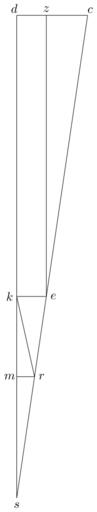 Keywords: Coppernicus 081.svg de à ber die Kreisbewegungen der Weltkörper 81 File Kreisbewegungen-Coppernicus-0 djvu p 236 1879 w Nicolaus Copernicus File Coppernicus_081 png PD-old-100 De revolutionibus drawings LaTeX Source Code <syntaxhighlight lang latex > complile with »pdflatex« \documentclasstikz convert pdf2svg standalone \usepackage tkz-euclide \usetkzobj all \begin document \begin tikzpicture \tkzSetUpLineline width 0 4pt \pgfmathsetmacro \DC 2 ; \pgfmathsetmacro \DK 3 96 \DC ; \pgfmathsetmacro \KE 0 43 \DC ; \pgfmathsetmacro \KM 1 13 \DC ; \pgfmathsetmacro \DS 6 8 \DC ; \tkzDefPoint 0 \DC C \tkzDefPoint 0 0 D \tkzDefPoint 0 -\DK K \tkzDefPoint 0 -\DK-\KM M \tkzDefPoint 0 -\DS S \tkzDefLineparallel through K D C \tkzGetPoint E' \tkzInterLL K E' S C \tkzGetPoint E \tkzDefLineparallel through M D C \tkzGetPoint R' \tkzInterLL M R' S C \tkzGetPoint R \tkzDefLineparallel through E K D \tkzGetPoint Z \draw D -- C ; \draw S -- C ; \draw K -- E ; \draw K -- R ; \draw D -- S ; \draw M -- R ; \draw Z -- E ; \draw C + 45 0 1 nodeanchor base c ; \draw D + 135 0 1 nodeanchor base d ; \draw E + 0 0 2 node e ; \draw K + 180 0 2 node k ; \draw M + 180 0 2 node m ; \draw R + 0 0 2 node r ; \draw S + -90 0 2 node s ; \draw Z + 90 0 1 nodeanchor base z ; \end tikzpicture \end document </syntaxhighlight> |