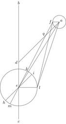 Keywords: Coppernicus 100.svg de à ber die Kreisbewegungen der Weltkörper 100 File Kreisbewegungen-Coppernicus-0 djvu p 283 1879 w Nicolaus Copernicus File Coppernicus_100 png PD-old-100 De revolutionibus drawings LaTeX Source Code <syntaxhighlight lang latex > complile with »pdflatex« \documentclasstikz convert pdf2svg standalone \usepackage tkz-euclide \usetkzobj all \begin document \begin tikzpicture \tkzSetUpLineline width 0 4pt \pgfmathsetmacro \DA 4 8 ; \pgfmathsetmacro \AF 0 55 ; \pgfmathsetmacro \EL 1 55 ; \tkzDefPoint 45 \DA A \tkzDefPoint 90 \DA B \tkzDefPoint -90 \DA C \tkzDefPoint 0 0 D \tkzDefPoint -90 3 85 \AF E \coordinate F at A + 180 \AF ; \coordinate L at E + 0 \EL ; \begin pgfinterruptboundingbox \tkzInterLC E F E L \tkzGetPoints M K \tkzDefLineparallel through E D A \tkzGetPoint E2 \tkzInterLC E E2 E L \tkzGetPoints H I \end pgfinterruptboundingbox \tkzInterLL D A E F \tkzGetPoint Q \tkzDrawCircle A F \tkzDrawCircle E L \draw B -- C ; \draw D -- A ; \draw E -- A ; \draw M -- F ; \draw A -- F ; \draw H -- I ; \draw E -- L ; \draw L -- F ; \draw L -- A ; \draw A + 32 0 2 node a ; \draw B + 90 0 2 node b ; \draw C + -90 0 2 node c ; \draw D + 180 0 2 node d ; \draw E + 135 0 2 node e ; \draw F + 180 0 2 node f ; \draw H + -130 0 2 node h ; \draw I + 40 0 2 node i ; \draw K + 100 0 2 node k ; \draw L + 0 0 2 node l ; \draw M + -100 0 2 node m ; \draw Q + 150 0 2 node q ; \end tikzpicture \end document </syntaxhighlight> |