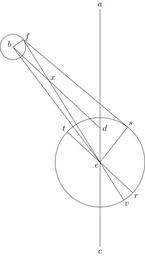 Keywords: Coppernicus 106.svg de à ber die Kreisbewegungen der Weltkörper 106 File Kreisbewegungen-Coppernicus-0 djvu p 291 1879 w Nicolaus Copernicus File Coppernicus_106 png PD-old-100 De revolutionibus drawings LaTeX Source Code <syntaxhighlight lang latex > complile with »pdflatex« \documentclasstikz convert pdf2svg standalone \usepackage tkz-euclide \usetkzobj all \begin document \begin tikzpicture \tkzSetUpLineline width 0 4pt \pgfmathsetmacro \DB 5 05 ; \pgfmathsetmacro \BF 0 54 ; \pgfmathsetmacro \ES 1 9 ; \tkzDefPoint 90 \DB A \tkzDefPoint 137 \DB B \tkzDefPoint -90 \DB C \tkzDefPoint 0 0 D \tkzDefPoint -90 2 7 \BF E \coordinate F at B + 35 \BF ; \coordinate S at E + 52 \ES ; \begin pgfinterruptboundingbox \tkzInterLC E F E S \tkzGetPoints V V2 \tkzDefLineparallel through E D B \tkzGetPoint E2 \tkzInterLC E E2 E S \tkzGetPoints R T \end pgfinterruptboundingbox \tkzInterLL D B E F \tkzGetPoint X \tkzDrawCircle B F \tkzDrawCircle E S \draw A -- C ; \draw D -- B ; \draw E -- B ; \draw V -- F ; \draw B -- F ; \draw R -- T ; \draw E -- S ; \draw S -- F ; \draw A + 90 0 2 node a ; \draw B + 137 0 2 node b ; \draw C + -90 0 2 node c ; \draw D + 0 0 2 node d ; \draw E + -135 0 2 node e ; \draw F + 35 0 2 node f ; \draw R + -45 0 2 node r ; \draw T + 135 0 2 node t ; \draw S + 52 0 2 node s ; \draw V + -50 0 2 node v ; \draw X + 30 0 2 node x ; \end tikzpicture \end document </syntaxhighlight> |