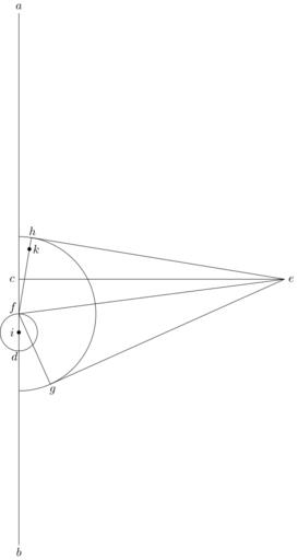 Keywords: Coppernicus 118.svg de à ber die Kreisbewegungen der Weltkörper 118 File Kreisbewegungen-Coppernicus-0 djvu p 313 1879 w Nicolaus Copernicus File Coppernicus_118 png PD-old-100 De revolutionibus drawings LaTeX Source Code <syntaxhighlight lang latex > complile with »pdflatex« \documentclasstikz convert pdf2svg standalone \usepackage tkz-euclide \usetkzobj all \begin document \begin tikzpicture \tkzSetUpLineline width 0 4pt \pgfmathsetmacro \CA 7 85 ; \pgfmathsetmacro \dot 0 05 ; \tkzDefPoint 90 \CA A \tkzDefPoint -90 \CA B \tkzDefPoint 0 0 C \tkzDefPoint -90 0 27 \CA D \tkzDefPoint 0 \CA E \tkzDefPoint -90 0 13 \CA F \tkzDefPoint -90 0 42 \CA F2 \coordinate I at D 0 5 F ; \tkzTangentfrom E F F2 \tkzGetPoints H G \coordinate K at F 0 85 H ; \tkzDrawArccolor black F F2 A \tkzDrawCircle I D \drawfill I circleradius \dot; \drawfill K circleradius \dot; \draw A -- B ; \draw C -- E ; \draw F -- E ; \draw F -- G ; \draw F -- H ; \draw G -- E ; \draw H -- E ; \draw A + 90 0 2 node a ; \draw B + -90 0 2 node b ; \draw C + 180 0 2 node c ; \draw D + -130 0 2 node d ; \draw E + 0 0 2 node e ; \draw F + 135 0 25 node f ; \draw G + -70 0 2 node g ; \draw H + 80 0 2 node h ; \draw I + 180 0 2 node i ; \draw K + 0 0 2 node k ; \end tikzpicture \end document </syntaxhighlight> |