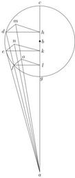 Keywords: Coppernicus 133.svg de à ber die Kreisbewegungen der Weltkörper 133 File Kreisbewegungen-Coppernicus-0 djvu p 350 1879 w Nicolaus Copernicus File Coppernicus_133 png PD-old-100 De revolutionibus drawings LaTeX Source Code <syntaxhighlight lang latex > complile with »pdflatex« \documentclasstikz convert pdf2svg standalone \usepackage tkz-euclide \usetkzobj all \begin document \begin tikzpicture \tkzSetUpLineline width 0 4pt \pgfmathsetmacro \BC 2 35 ; \pgfmathsetmacro \dot 0 05 ; \tkzDefPoint -90 3 7 \BC A \tkzDefPoint 0 0 B \tkzDefPoint 90 \BC C \tkzDefPoint 165 \BC D \tkzDefPoint -90 \BC G \tkzDefPoint 145 0 84 \BC M \tkzTangentfrom A B C \tkzGetPoints E2 E \begin pgfinterruptboundingbox \tkzInterLC A D B C \tkzGetPoints F D \coordinate H at A D C ; \coordinate K at A E C ; \coordinate L at A F C ; \tkzDefLineparallel through E D M \tkzGetPoint N' \coordinate N at E 0 85 N' ; \tkzDefLineparallel through F D M \tkzGetPoint O' \tkzInterLL A M F O' \tkzGetPoint O \end pgfinterruptboundingbox \tkzDrawCircle B C \drawfill B circleradius \dot; \draw A -- C ; \draw A -- D ; \draw A -- E ; \draw A -- M ; \draw A -- N ; \draw D -- H ; \draw D -- M ; \draw E -- K ; \draw E -- N ; \draw F -- L ; \draw F -- O ; \draw H -- M ; \draw K -- N ; \draw L -- O ; \draw A + -90 0 2 node a ; \draw B + 0 0 2 node b ; \draw C + 90 0 2 node c ; \draw D + 160 0 2 node d ; \draw E + -160 0 2 node e ; \draw F + -115 0 2 node \footnotesize f ; \draw G + -55 0 2 node g ; \draw H + 0 0 2 node h ; \draw K + 0 0 2 node k ; \draw L + 0 0 2 node l ; \draw M + 90 0 2 node m ; \draw N + 90 0 2 node n ; \draw O + 45 0 2 node o ; \end tikzpicture \end document </syntaxhighlight> |