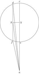 Keywords: Coppernicus 135.svg de à ber die Kreisbewegungen der Weltkörper 135 File Kreisbewegungen-Coppernicus-0 djvu p 355 1879 w Nicolaus Copernicus File Coppernicus_135 png PD-old-100 De revolutionibus drawings LaTeX Source Code <syntaxhighlight lang latex > complile with »pdflatex« \documentclasstikz convert pdf2svg standalone \usepackage tkz-euclide \usetkzobj all \begin document \begin tikzpicture \tkzSetUpLineline width 0 4pt \pgfmathsetmacro \BC 2 47 ; \pgfmathsetmacro \CBD 20 ; \tkzDefPoint -90 2 5 \BC A \tkzDefPoint 0 0 B \tkzDefPoint 90 \BC C \tkzDefPoint 90+\CBD \BC D \tkzDefPoint -90-\CBD \BC F \coordinate G at D 0 5 F ; \begin pgfinterruptboundingbox \tkzInterLC A C B C \tkzGetPoints E C \end pgfinterruptboundingbox \tkzDrawCircle B C \draw A -- C ; \draw A -- D ; \draw A -- F ; \draw A -- G ; \draw B -- G ; \draw D -- F ; \draw A + -90 0 2 node a ; \draw B + 0 0 2 node b ; \draw C + 90 0 2 node c ; \draw D + 90 0 2 node d ; \draw E + -45 0 2 node e ; \draw F + -120 0 25 node f ; \draw G + 180 0 2 node g ; \end tikzpicture \end document </syntaxhighlight> |