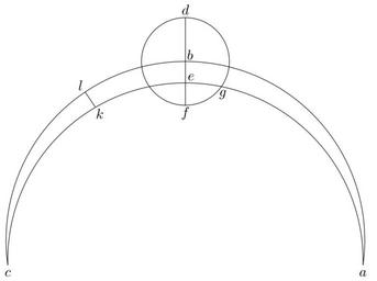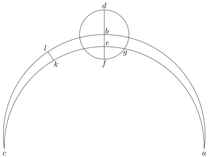 Keywords: Coppernicus 137.svg de à ber die Kreisbewegungen der Weltkörper 137 File Kreisbewegungen-Coppernicus-0 djvu p 357 1879 w Nicolaus Copernicus File Coppernicus_137 png PD-old-100 De revolutionibus drawings LaTeX Source Code <syntaxhighlight lang latex > complile with »pdflatex« \documentclasstikz convert pdf2svg standalone \usepackage tkz-euclide \usetkzobj all \begin document \begin tikzpicture \tkzSetUpLineline width 0 4pt \pgfmathsetmacro \OA 4 45 ; \tkzDefPoint -8 \OA A \tkzDefPoint 90 \OA B \tkzDefPoint -172 \OA C \tkzDefPoint 90 1 245 \OA D \tkzDefPoint 90 0 88 \OA E \tkzDefPoint 124 \OA L \tkzDefPoint 0 0 O \begin pgfinterruptboundingbox \tkzCircumCenter A E C \tkzGetPoint AEC \tkzInterLC D B B D \tkzGetPoints D F \tkzInterCC AEC E B D \tkzGetPoints G2 G \tkzInterLC L O AEC E \tkzGetPoints K K2 \end pgfinterruptboundingbox \tkzDrawArccolor black O A C \tkzDrawArccolor black AEC A C \tkzDrawCircle B D \draw D to F ; \draw K to L ; \draw A + -90 0 2 node a ; \draw B + 55 0 2 node b ; \draw C + -90 0 2 node c ; \draw D + 90 0 2 node d ; \draw E + 45 0 2 node e ; \draw F + -90 0 2 node f ; \draw G + -80 0 2 node g ; \draw K + -56 0 2 node k ; \draw L + 124 0 2 node l ; \end tikzpicture \end document </syntaxhighlight> |