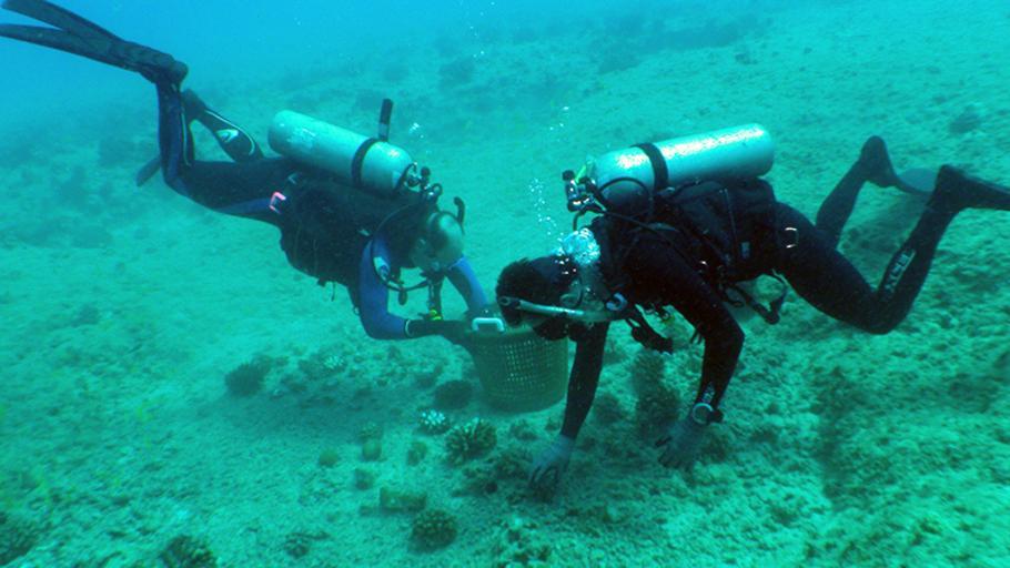 | Keywords: coral coral reef coralreef underwater diver scientist ocean coral restoration coralrestoration office of response and restoration officeofresponseandrestoration noaa nos national ocean service nationaloceanservice hawaii hawaii coral hawaiicoral m/v vogetrader mvvogetrader water swim sport Two divers unload a basket full of loose corals into a safe holding area so that they can be returned after the rubble from the grounding site is removed, minimizing further impacts. Background: Emergency coral restoration is underway just outside the entrance to Hawaii’s Kalaeloa Harbor. NOAA and partners are working with the owners of the cargo vessel M/V VogeTrader to repair corals that were injured when the vessel accidentally lodged itself onto the reef one morning in 2010. (Original source and more information: NOAA Office of Response and Restoration Website) Two divers unload a basket full of loose corals into a safe holding area so that they can be returned after the rubble from the grounding site is removed, minimizing further impacts. Background: Emergency coral restoration is underway just outside the entrance to Hawaii’s Kalaeloa Harbor. NOAA and partners are working with the owners of the cargo vessel M/V VogeTrader to repair corals that were injured when the vessel accidentally lodged itself onto the reef one morning in 2010. (Original source and more information: NOAA Office of Response and Restoration Website) |