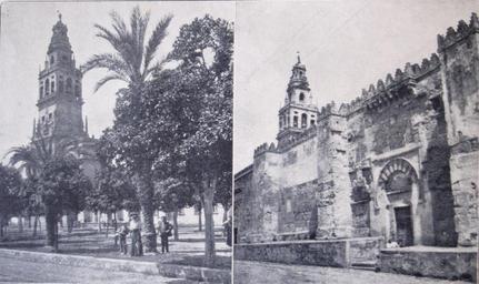 Keywords: Cordova.png nl Curiositeiten te Cordova Andalusië Spanje - Foto links De Patio de los Naranjas Sinaasappelenhof van de beroemde Mezquita te Cordova met zijn slank oprijzenden klokketoren Vele groote kerken in Spanje sluiten door muren of galerijen met colonnades of arcader een buitenhof of tuin in beplant met palmen en sinaasappelboomen welke gelijktijdig bloesem en vrucht dragende zoowel voor het oog als voor de reukorganen groote bekoring hebben In den hof prijken gewoonlijk eenige fonteinen waardoor de aanblik verhoogd wordt Foto rechts De Mezquita of Moskee het meest bezienswaardige gebouw in Cordova eertijds de hoofdstand van het Moorsche Rijk in Spanje; deze tempel in 785 door Abderrahman I gegrondvest en door de opvolgende koningen uit het geslacht der Omayyaden voltooid munt ui door pracht en is met zijn sierlijken toren een van de grootste meesterwerken van de Arabische bouwkunst Het gewelfde dak rust op 850 zuilen van marmer porfier en jaspis op onze foto is een stuk van de ommuring en het bovendeelte van den toren weergegeven; boven de poort is de toog in den vorm van een hoefijzer duidelijk zichtbaar; dit motief vervult een belangrijke rol in de architectuur en de versieringen van het eeuwenoude monumentale gebouw De prins der geillustreerde bladen V Leers 1911-03-18 PD-old De Prins der Geillustreerde Bladen Patio de los Naranjos Mosque-Cathedral of Córdoba 1911 in Córdoba Spain West facade of the Mosque-Cathedral of Córdoba Historical images of Córdoba Spain Puerta de San Esteban Mosque of Córdoba Black and white photographs of Córdoba Spain |