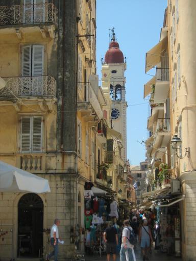 Keywords: corfu saint spyridon church greece cathedral of saint spyridon street old town tourists