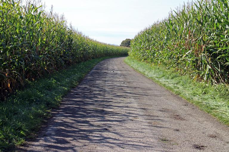 Keywords: corn cornfield away road lane dirt track agriculture field cultivation nature corn plants food