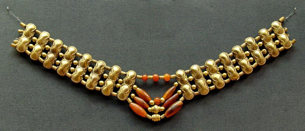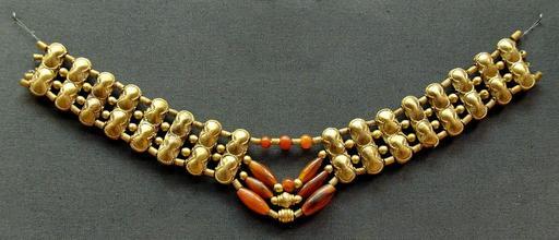 Keywords: Cornelian necklace BM GR1897.4-1.623.jpg Necklace with gold beads in the shape of double figure-of-eight shields spiral gold beads and cornelian beads Cypriot artwork with Mycenaean inspiration ca 1400-1200 BC From Enkomi Collier à perles d'or en huit et à perles de cornaline Art chypriote et inspiration mycénienne vers 1400-1200 av J -C H beads 3 5 cm 1 ¼ in Museum British Museum Main floor room 12 Greek Bronze Age object history credit line accession number GR 1897 4-1 623 Cat Jewellery 580 Jastrow 2006 other versions Carnelian Prehistoric necklaces Ancient Cyprus Enkomi Cyprus w Ancient Greek jewellery 14th-century BC works 13th-century BC works Room 12 British Museum Greek antiquities in the British Museum Ancient Cypriot art in the United Kingdom Jewellery in the British Museum |