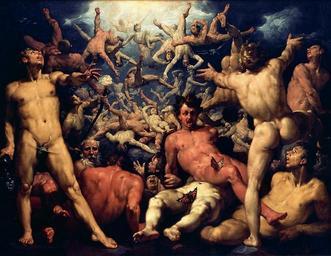 | Keywords: Cornelis Cornelisz. van Haarlem 002.jpg Artwork Q5966108 Creator Cornelis Cornelisz van Haarlem LangSwitch Lucifers fald The fall of Lucifer De val van Lucifer La Chute de Lucifer Alternate titles ~ 1588 1587-1590 Oil on canvas cm 239 307 Institution Statens Museum for Kunst Copenhagen accession number KMS1 object history ProvenanceEvent 1690 acquisition LangSwitch the Danish crown de Deense kroon ProvenanceEvent 1987 transfer Statens Museum for Kunst Copenhagen Kronborg credit line 40782 LangSwitch The fall of Lucifer Rev 19 20 De val van Lucifer Openbaringen 19 20 ~ 1588 1587-1589 own PD-old-100 The Fall of the Titans es La caĆda de los titanes |