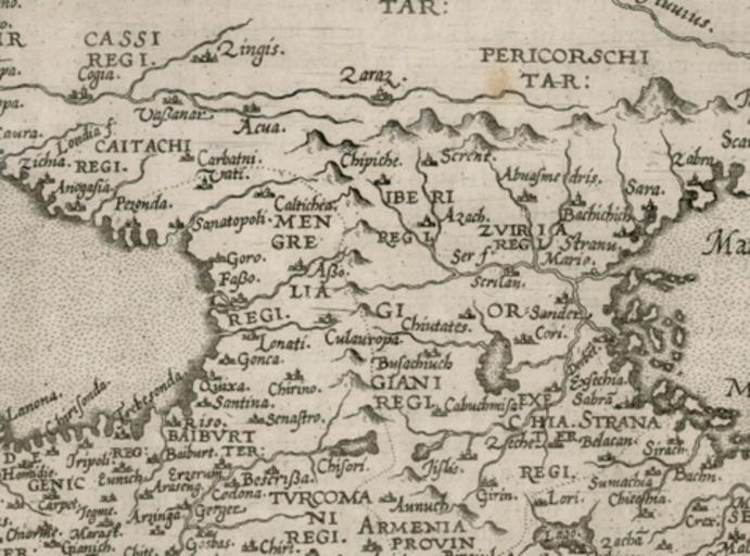 | Keywords: Cornelis De Jode. Primae Partis Asiae accurata delineatio. 1579-Caucasus.jpg Cornelis De Jode Primae Partis Asiae accurata delineatio ¦ shows Cyprus First State en First edition of De Jode's highly desirable map of the region bounded by the Black Sea and Mediterranean in the West and Afganistan and Central Asia in the East Cyprus is prominently shown in the Eastern Mediterranean The 579 edition of the map pre-dates the appearance of the name Meotis in the Mare de le Zabache Sea of Azov Palus Meotis was the ancient name for Sea of Azof with references to the name dating back to Strabo and before De Jode's was a contemporary of Ortelius His Speculum Orbis did not enjoy the same commercial success as Ortelius making his maps very scarce and highly desirable This map was engraved by the van Deutecum brothers and is based upon an earlier map by Gastaldi Cornelis_De_Jode _Primae_Partis_Asiae_accurata_delineatio _1579 jpg 50 1579 Cornelis de Jode geagea Cornelis_De_Jode _Primae_Partis_Asiae_accurata_delineatio _1579 jpg PD-old-auto-1923 1600 ImageNote 1 133 124 80 87 478 354 2 Mengrelia Regi ImageNoteEnd 1 ImageNote 2 242 115 52 20 478 354 2 Iberi ImageNoteEnd 2 ImageNote 3 236 183 102 80 478 354 2 Giorgiani Regi ImageNoteEnd 3 ImageNote 4 104 267 69 28 478 354 2 Baibvrtter ImageNoteEnd 4 ImageNote 5 43 81 81 36 478 354 2 Chitachi Regi ImageNoteEnd 5 ImageNote 6 50 14 57 33 478 354 2 Cassi Regi ImageNoteEnd 6 ImageNote 7 172 309 66 39 478 354 2 Tvrcomani Regi ImageNoteEnd 7 1579 maps Cornelis de Jode Old maps of the Caucasus Old maps of Samegrelo Maps of the Kingdom of Iberia 16th-century maps of Georgia 16th-century maps of Azerbaijan Old maps of Armenia Johannes van Deutecum |