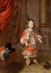 Keywords: Cornelis Sustermans - Archduke Charles Joseph (1649-1664) with squirrel, aged four to five years.jpg Archduke Charles Joseph 1649-1664 with squirrel aged four to five years Erzherzog Karl Joseph 1649-1664 mit Eichhörnchen im Alter von vier bis fünf Jahren c 1653/1654 color canvas cm 140 101 <br> Langswitch Rahmenmaße frame 153 x 114 x 7 cm Institution KHM GG_3188 object history Aus der kaiserlichen Hofburg in Wien; <br>1772 in der Galerie nachweisbar im Postament der Säule CORNE SUTTERMAN fe ~ signature SR S CAROLUS JOSEPHUS ARCHIDUX ~ lower center text Abgebildete Person <br>Erzherzog Karl Joseph Sohn des Ferdinand III von Habsburg Österreich http //www khm at/de/objektdb/detail/2404/ Kunsthistorisches Museum other versions PD-old-100 Cornelis Sustermans Flemish paintings in the Kunsthistorisches Museum Sustermans Cornelis Archduke Charles Joseph of Austria 1653c 1650s paintings in Austria 1653 portrait paintings Male 17th-century oil portraits of boys at full length 1653c 17th-century portrait paintings in the Kunsthistorisches Museum 1653c Columns on pedestals in portrait paintings 1653c Male boots in portrait paintings 1653c Portrait paintings of boys with animals 1653c Portrait paintings of standing boys Portrait paintings with squirrels 1653c Portraits with swords 1653c Red drapery in portrait paintings 1653c |